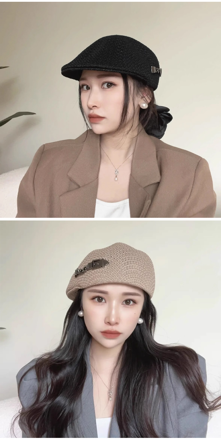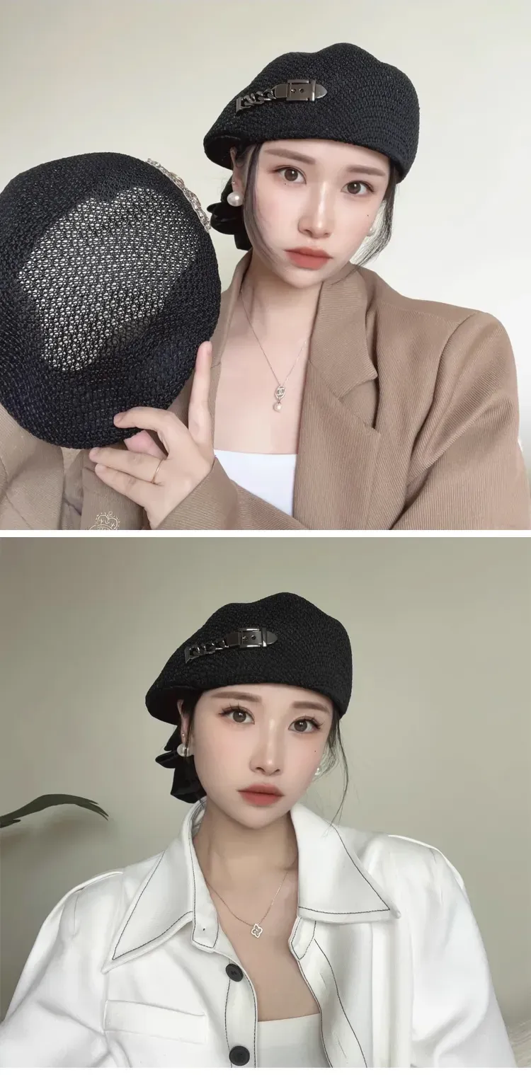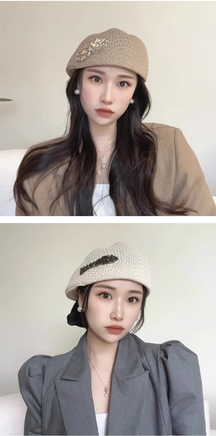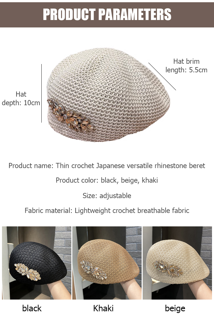 Thin crochet Japanese style versatile rhinestone beret